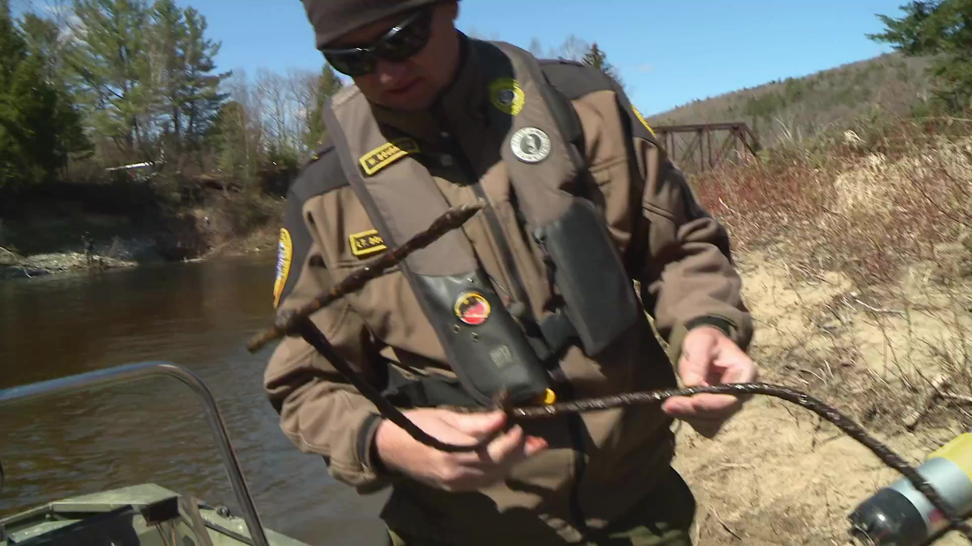 When the embankment of the Upper Ammonoosuc River begins to erode near a cemetery, The Fish and Game Dive Team searches the water for gravestones and bodies. A hunter is caught without her license, and a loaded firearm puts lives at risk.
