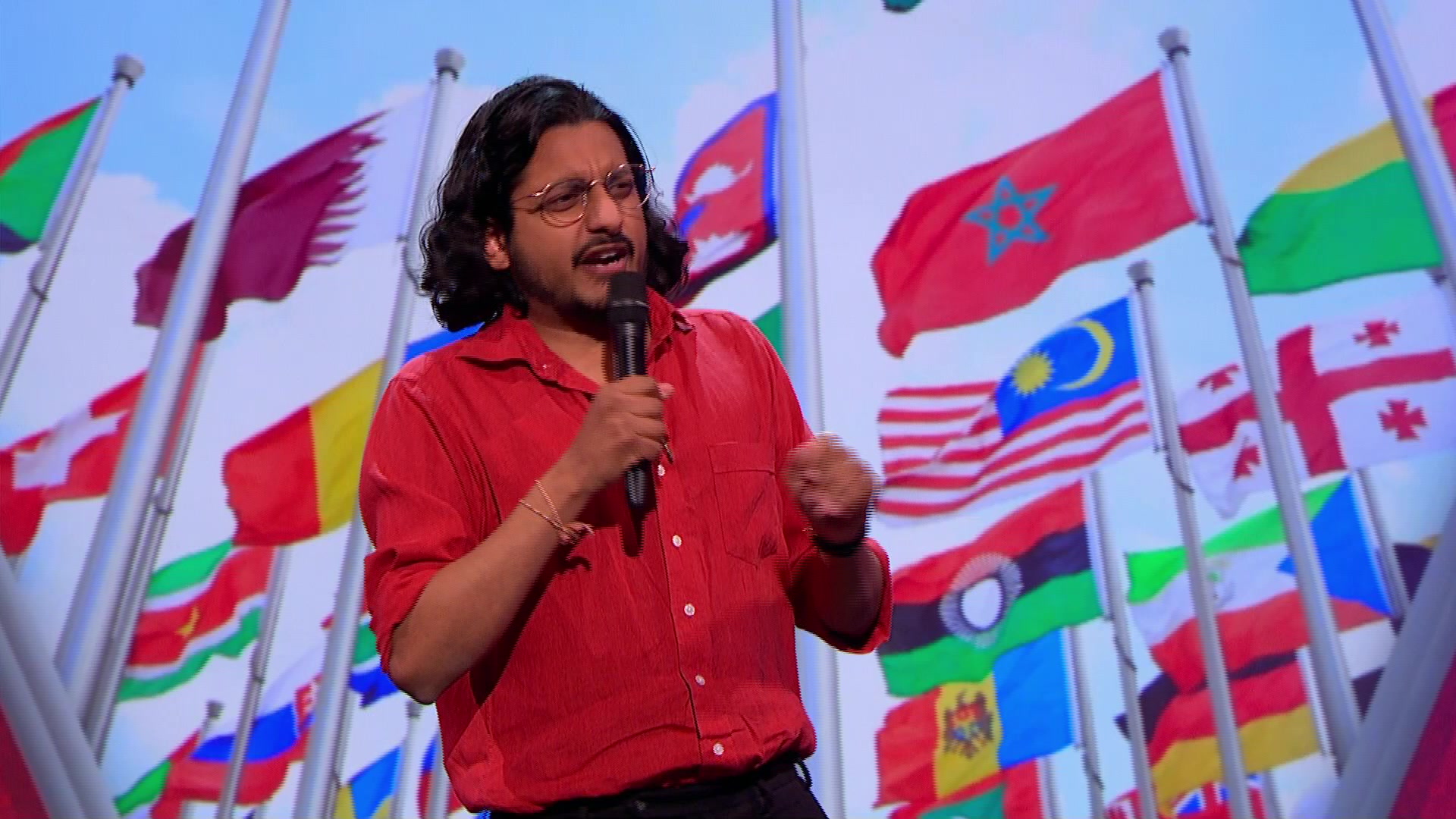 in current events with guests Angela Barnes, Ed Byrne