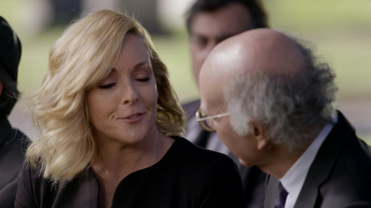 Larry attempts to capitalize on a friend's unexpected death and takes issue with a pattern of discrimination at a trendy restaurant. Later, Larry offers his dermatologist's son a job and Richard has a suspiciously good day on the golf course.
