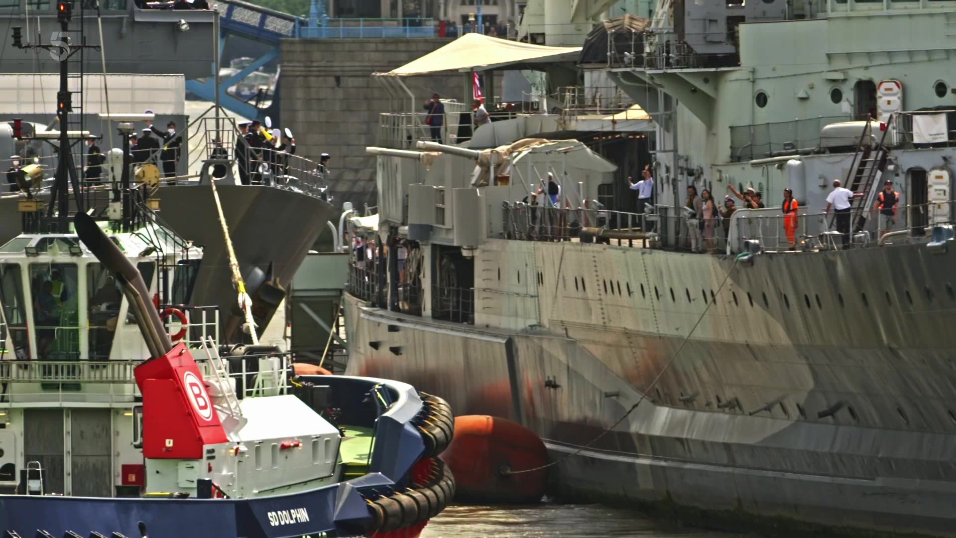 Deputy governor Debbie Whittingham and yeoman gaoler Rob Fuller have spotted an impressive visitor berthed across the river from the Tower - it's a Japanese warship, which is on a world tour and is stopping off in the capital. Meanwhile, Historic Royal Palaces chief curator Tracy Borman investigates the bridges that connect the Tower to the south side of the Thames, including London Bridge and Tower Bridge.