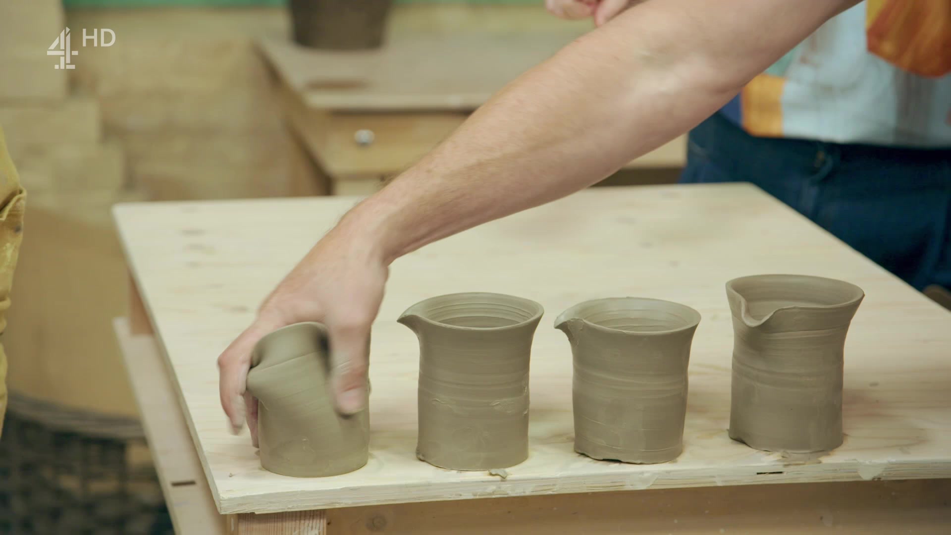 The battle of the clay returns, as 12 home potters compete to become champion of the pottery. They take on a birthday tea set challenge, and make handleless jugs.