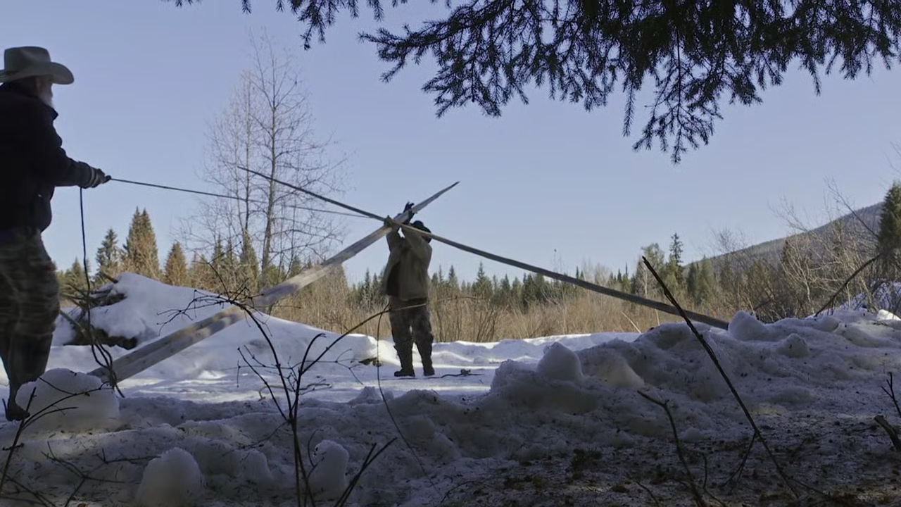On his 80th birthday Tom builds a teepee, while Nancy plans him a surprise party. Jake runs a mountain lion off the highway during calving season. Paul hauls his trapping shed up a steep and narrow mountain road to new property. Kidd and Harry excavate the side of a hill to build a root cellar. Ray renders fish oil from fresh caught walleye for his traps.