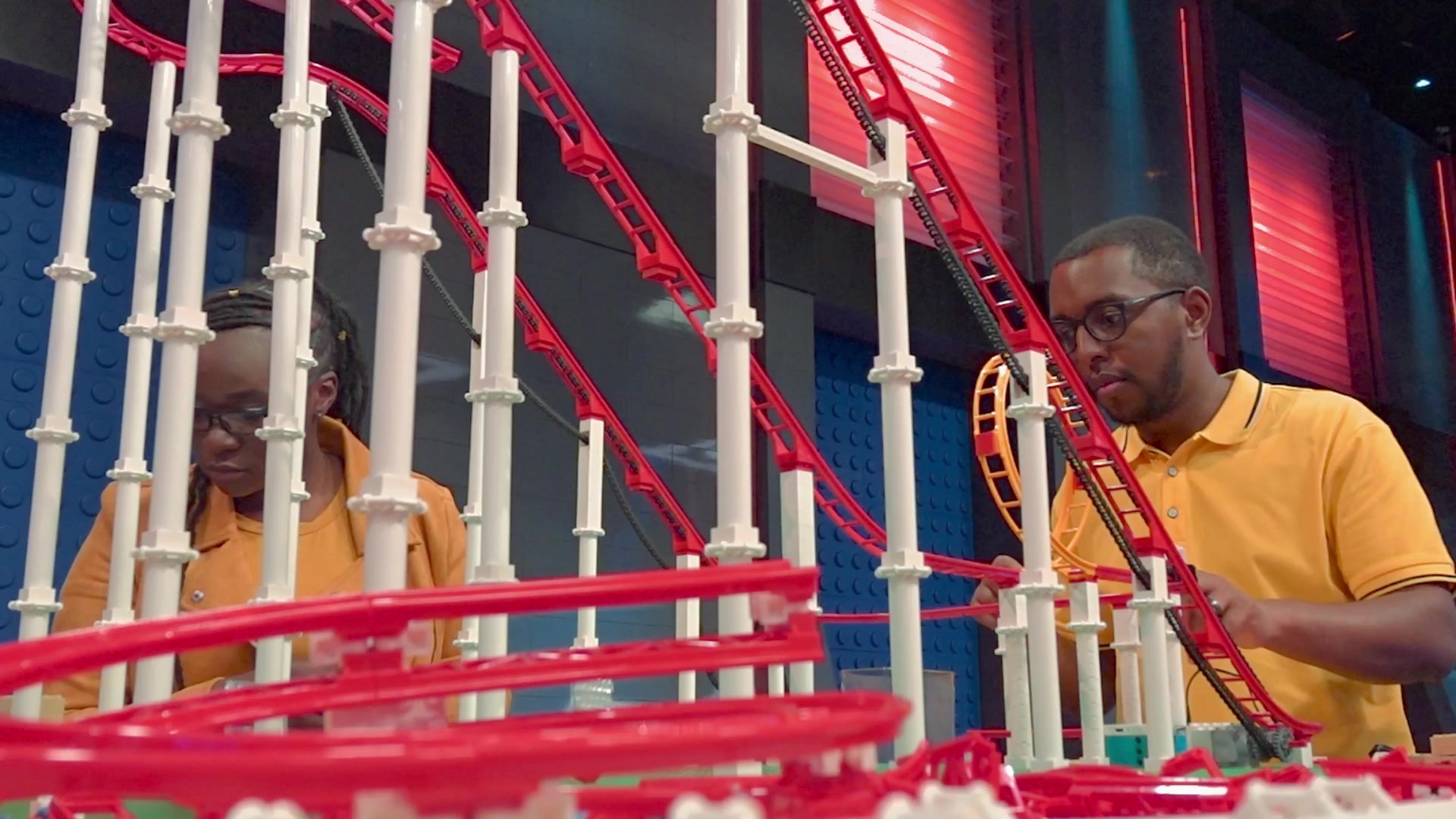 The pairs are tasked with creating a roller coaster that incorporates a mechanical lift and a drop.