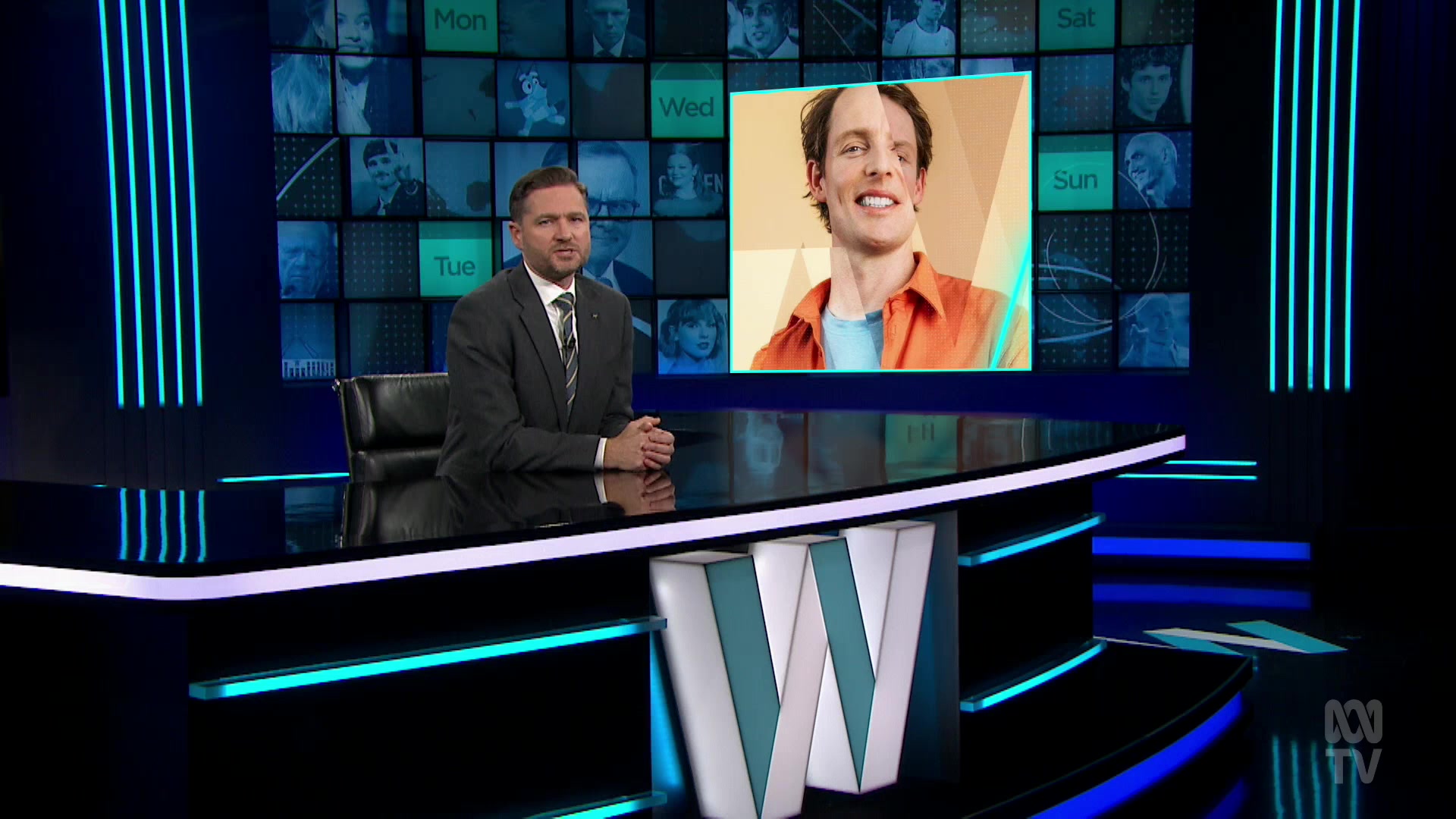 Charlie judges Lehrmann and cancels the Olympics, Margaret Pomeranz gives Todd Woodbridge an unreturnable serve, Concetta Caristo makes friends with the neighbours and Kiwi comic Guy Montgomery checks our spelling.