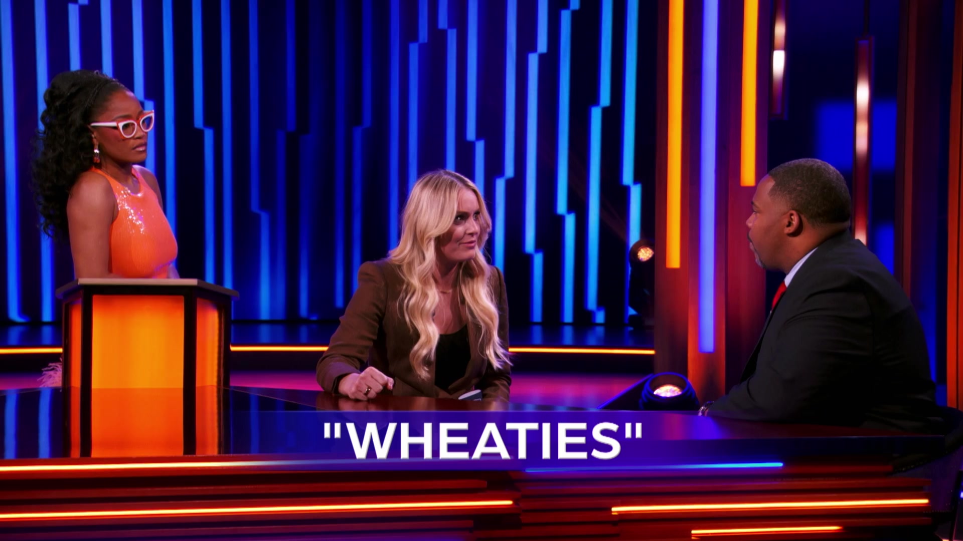 Jimmy Fallon and Lindsey Vonn pair up with contestants to play a word game for a cash prize.