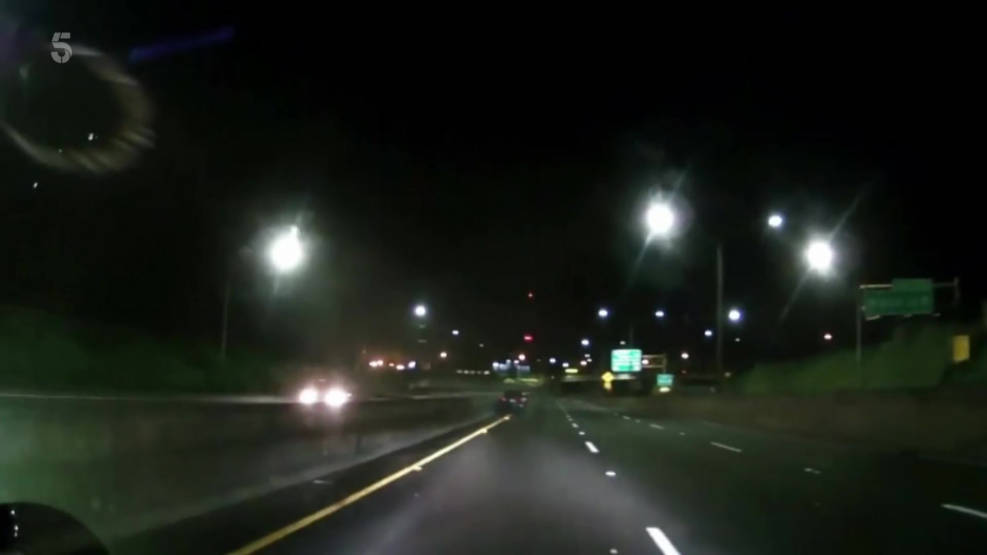 a road to the van and car veering wildly across a busy