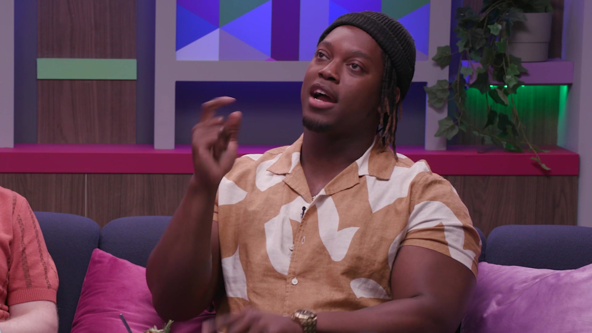 Rekha, Jordan, Sam, and Ify drink Grant's Cure and try to out host one another.