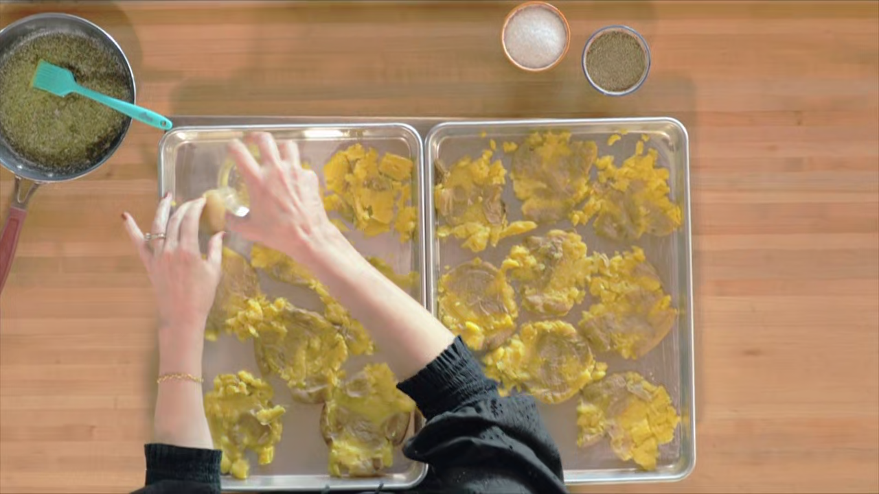 Ree Drummond takes potluck classics to the next level. She makes Chorizo Baked Beans that are a sure-fire crowd pleaser and elevates an awesome Napa Cabbage Salad into a buffet must-have. Then, Ree puts a whole new spin on a favorite with Smashed Potato Salad and updates Lemon Blueberry Ice Box Cake to take to a girls' get-together, where it's guaranteed to be the star of the spread.
