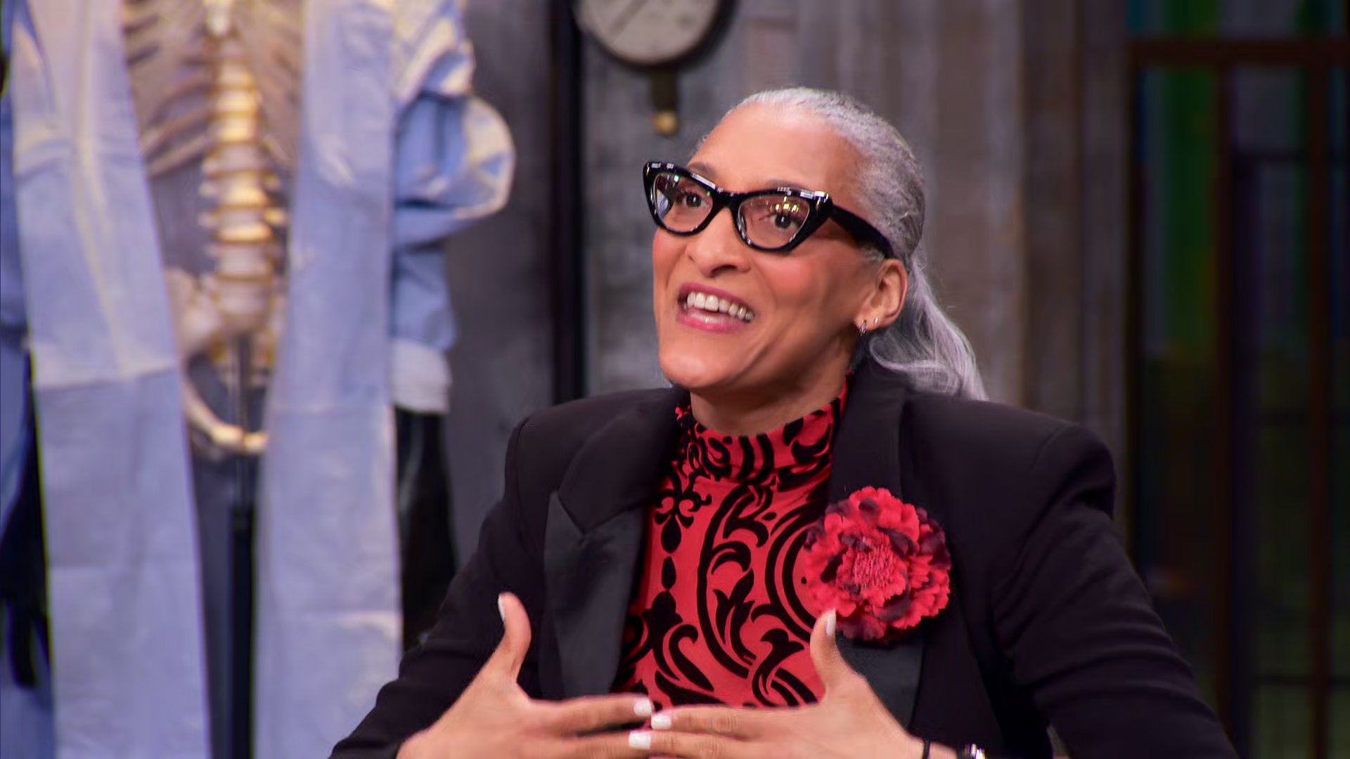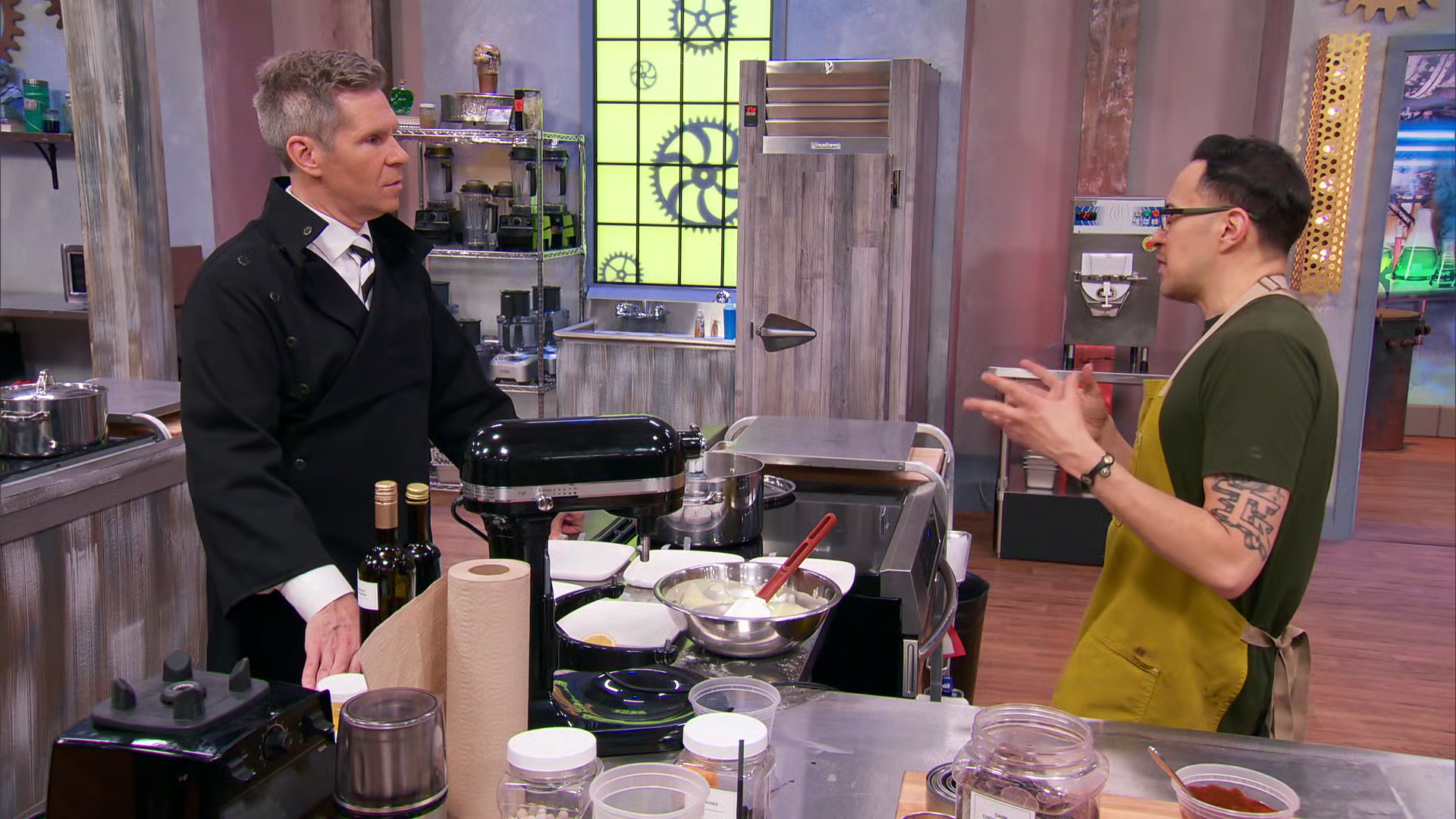 John Henson summons the spirit of Beetlejuice to help broker a deal with the lab's other spirits. To butter up the ghost with the most, he asks the bakers to make black and white desserts and Shrinker treats that feature a tiny dessert atop a larger one.