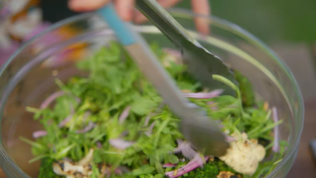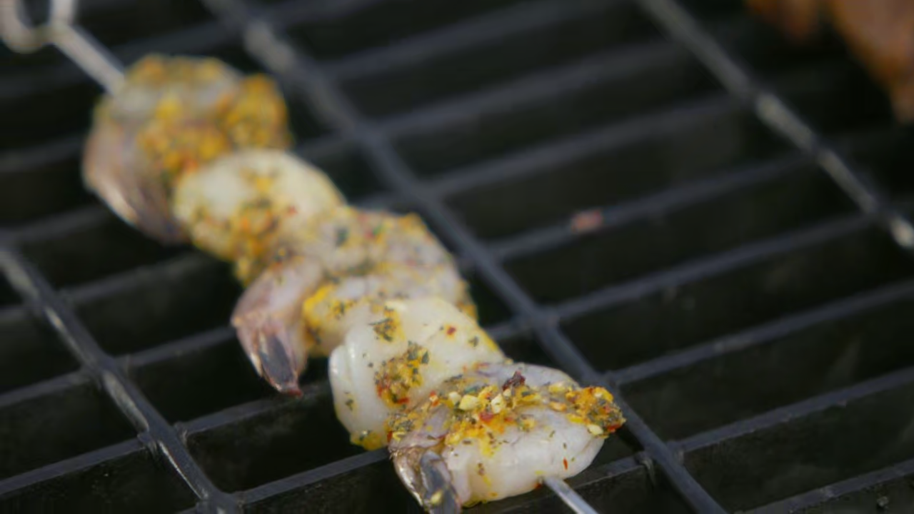 Ree Drummond grills a whole meal over the flames with a little help from some indoor prep. There's surf and turf with spectacular Herby Grilled Shrimp and Scallop Skewers and juicy marinated Savory Grilled Steak Skewers. On the side, there's an amazing Charred Broccoli and Cauliflower Salad, plus great Grilled Yukon Gold Potatoes with a spicy butter. Finally, Ree combines hot and cold with Coconut Cream Icebox Pie with Grilled Pineapple.