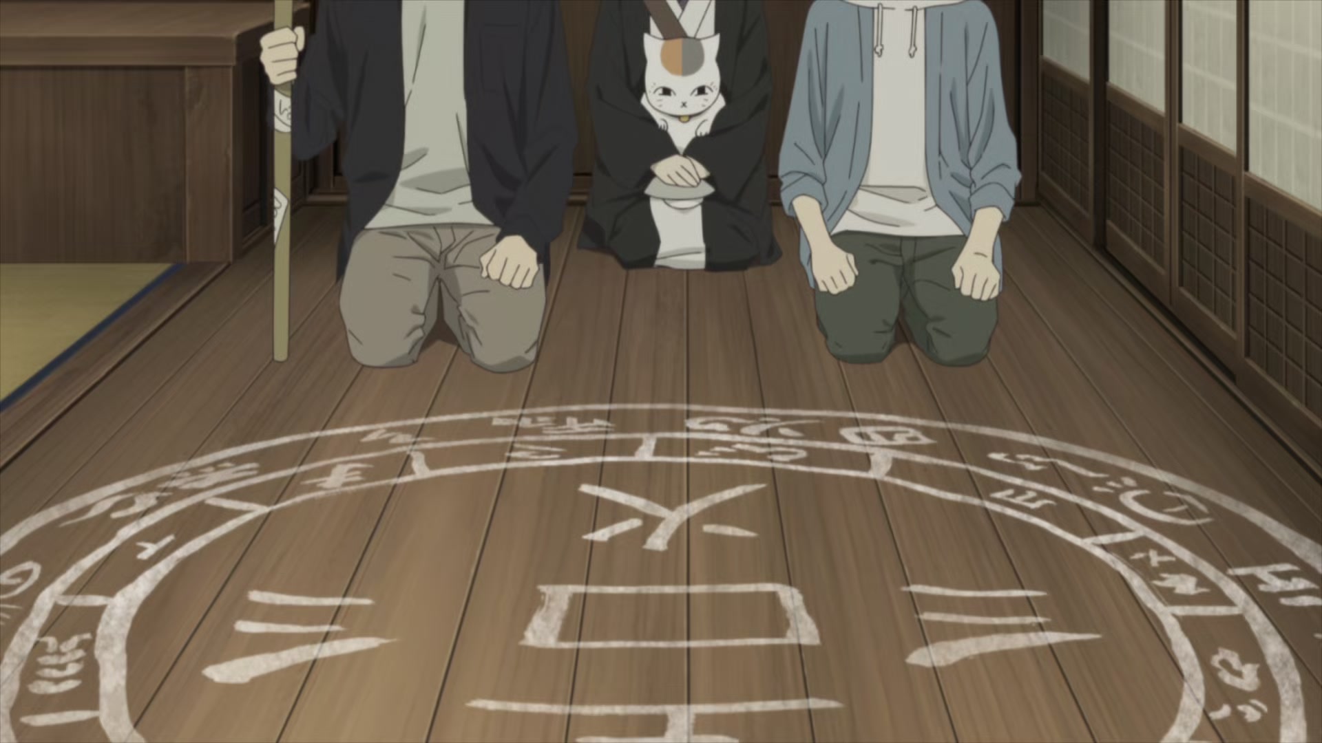 Natsume, Natori and Matoba work to complete the ritual to welcome a powerful god.