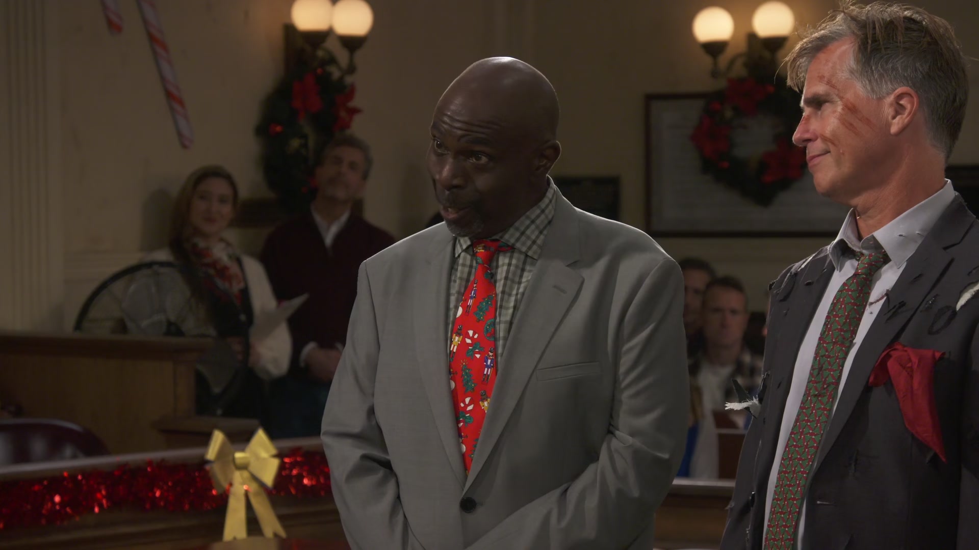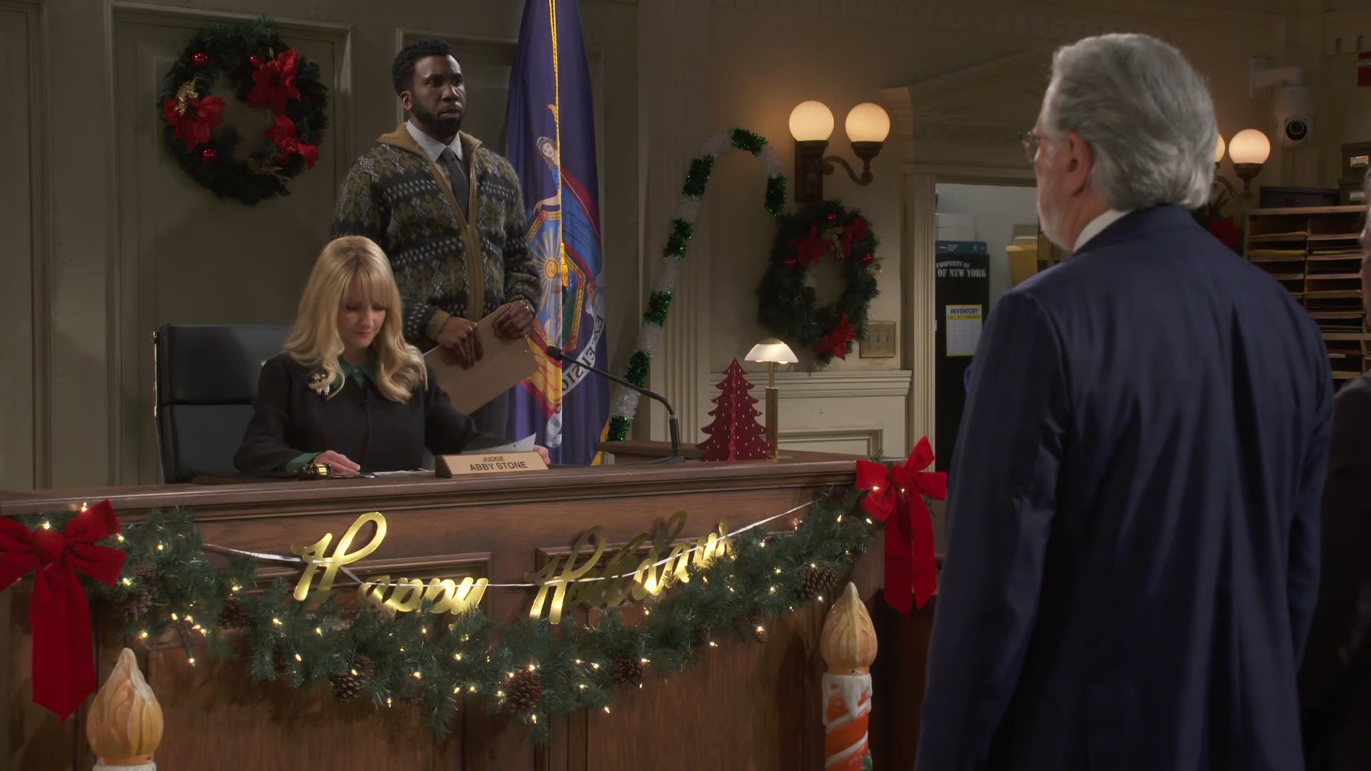 Abby's holiday plans are derailed after a murder mystery performer causes chaos in the courthouse; Gurgs and Wyatt find themselves at odds over office etiquette.