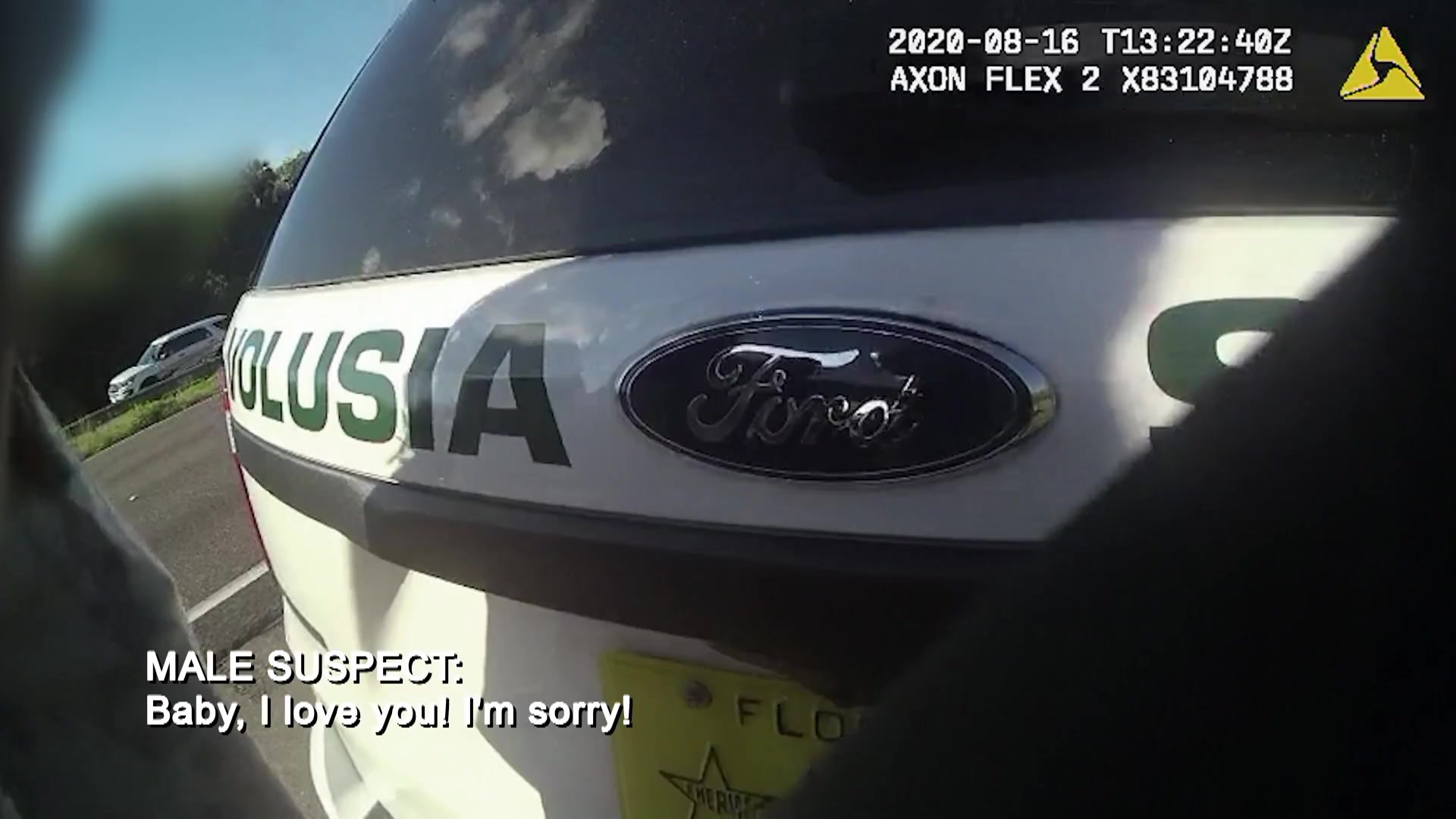 Law enforcement officers pursue fugitives on the run. A man wanted for carjacking runs out of road during a high-speed chase; an officer climbs on the hood of a car while trying to prevent a fugitive from fleeing; a man arrested for fleeing/eluding and reckless driving screams apologies and declarations of love to his girlfriend; and more.