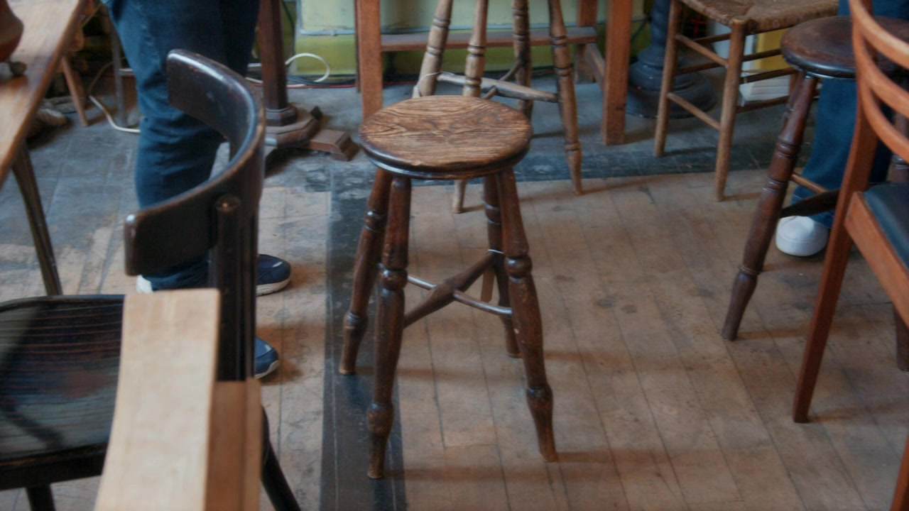 Drew and Viki buy for Viki's new Edinburgh premises and they find deer antlers from a Cumbrian country house and industrial tables from a former tannery.