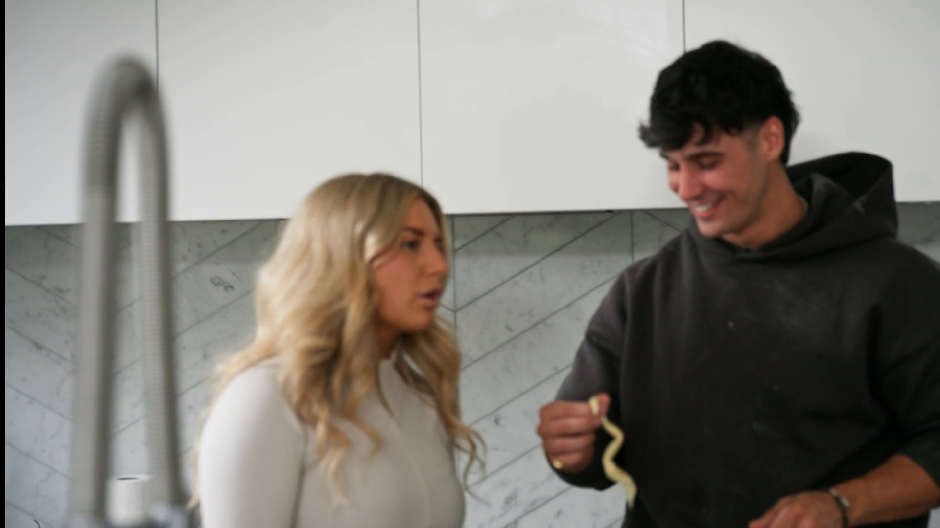 The Love Triangle experience is in full swing with the two suitors and the singles living together under one roof, plus an explosive first triangle party.