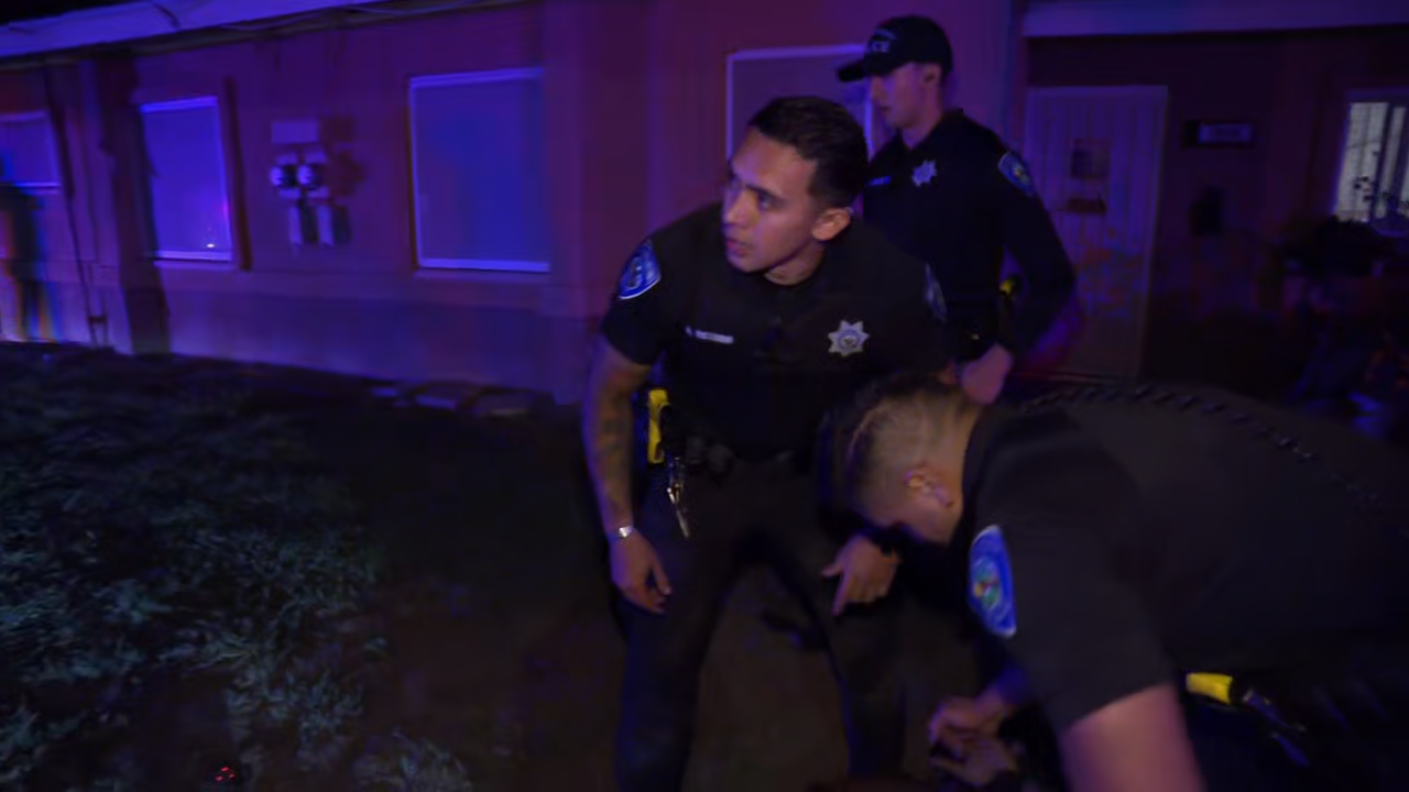A suspect fights with San Bernardino Officers and reaches for a waist pack before declaring that he has a gun concealed inside. A man with warrants pretends not to notice a Riverside County Deputy attempting to stop him for riding a bike with no lights and pedals into a backyard. A passerby calls Stockton Police when he sees a man push his girlfriend during a domestic dispute. Officers determine that the man threw his car keys on the roof while preventing her from leaving.