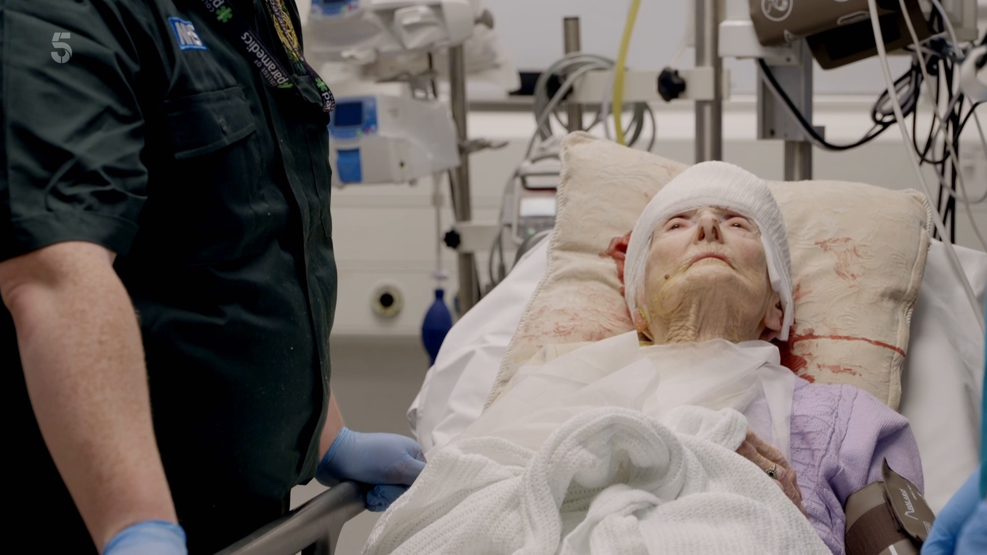 Ninety-three-year-old Eileen has had a bad fall, leaving her bleeding from a wound on her head. She's taken through to an available space in resus where paramedics handover to Dr Joshua Wren. In paediatrics, Andy brings in 11-year-old daughter Jessica who has broken her arm. She is administered pain relief while emergency nurse practitioner Tony prepares a cast for her arm.