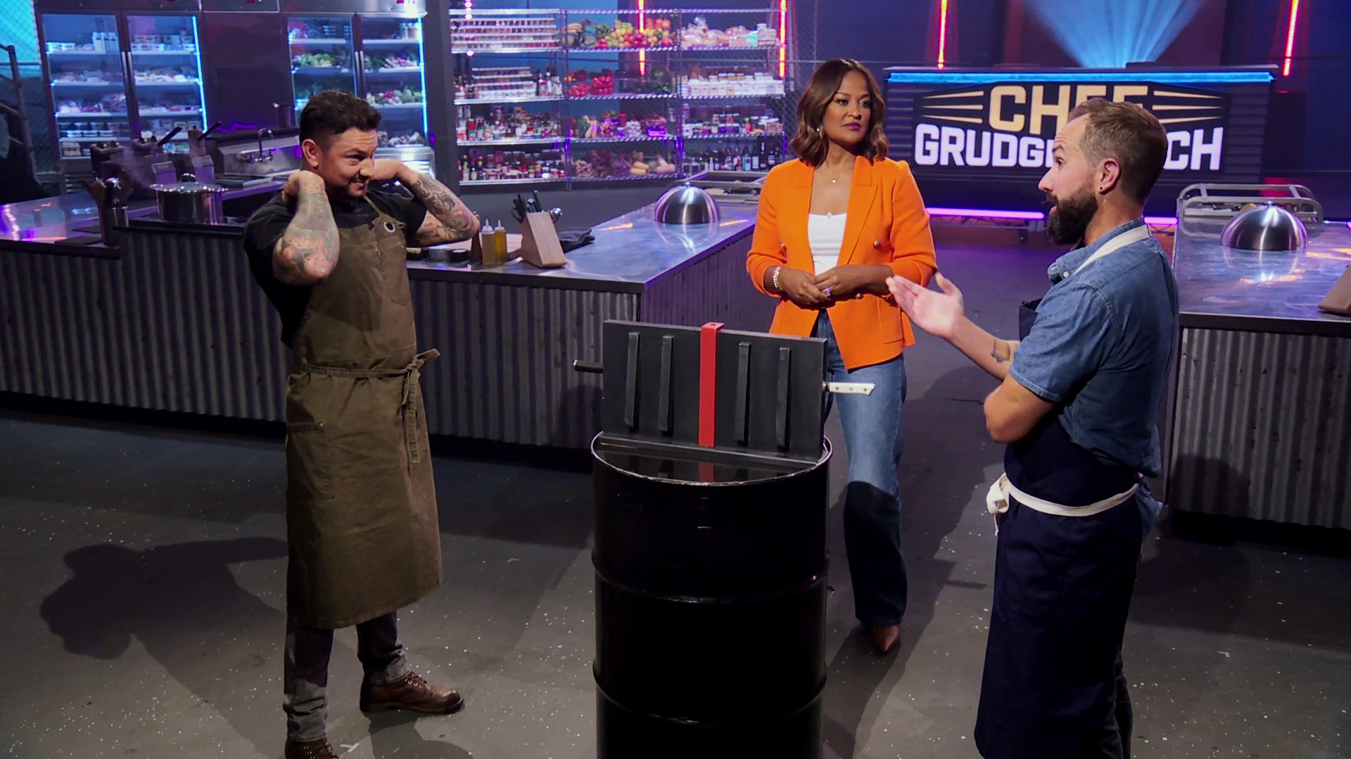 In the premiere episode, host Laila Ali welcomes Gabe Bertaccini, a Food Network favorite who has been holding a grudge for 15 years against his prodigy, Tyler Romine, who quit Gabe's catering business with only three days' notice. And in the second match, Vail Colorado's Taylor Frankel has a grievance with her former sous chef, Maria Busato, after she opened a rival catering company in the same small town.