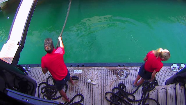 Captain Sandy and three trusted returnees are back for another wild charter season but when two deckies are sidelined by illness, the crew struggles to get the boat ready in time for charter. Aesha worries one of her green stews may be giving her deju vu. A crew member damages the boat on the first night.