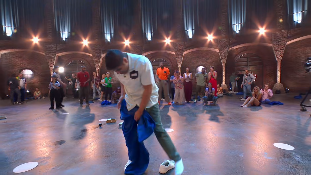 The remaining contestants compete in five games, "Frozen Pants," "Coin in a Glass," "Tape Measure Retract," "Nail Balance" and "Domino Run."