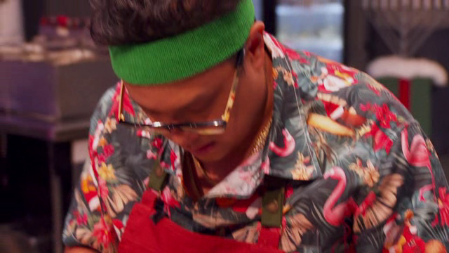 The holiday magic continues with host Guy Fieri and two final first-round battles sure to leave your tastebuds tingling! James Beard winner Jonathon Sawyer and three-time TOC finalist Britt Rescigno face off against the team of TOC VI finalist Lee Anne Wong and pastry superstar Zac Young. Then, in the final battle of the first round, the super team of Iron Chef Stephanie Izard and two-time TOC champ Maneet Chauhan does battle with the team of the dragon slayer Kevin Lee and James Beard nominee Dale Talde. These chefs came to rein, but only two teams will "sleigh" their way into the next round!