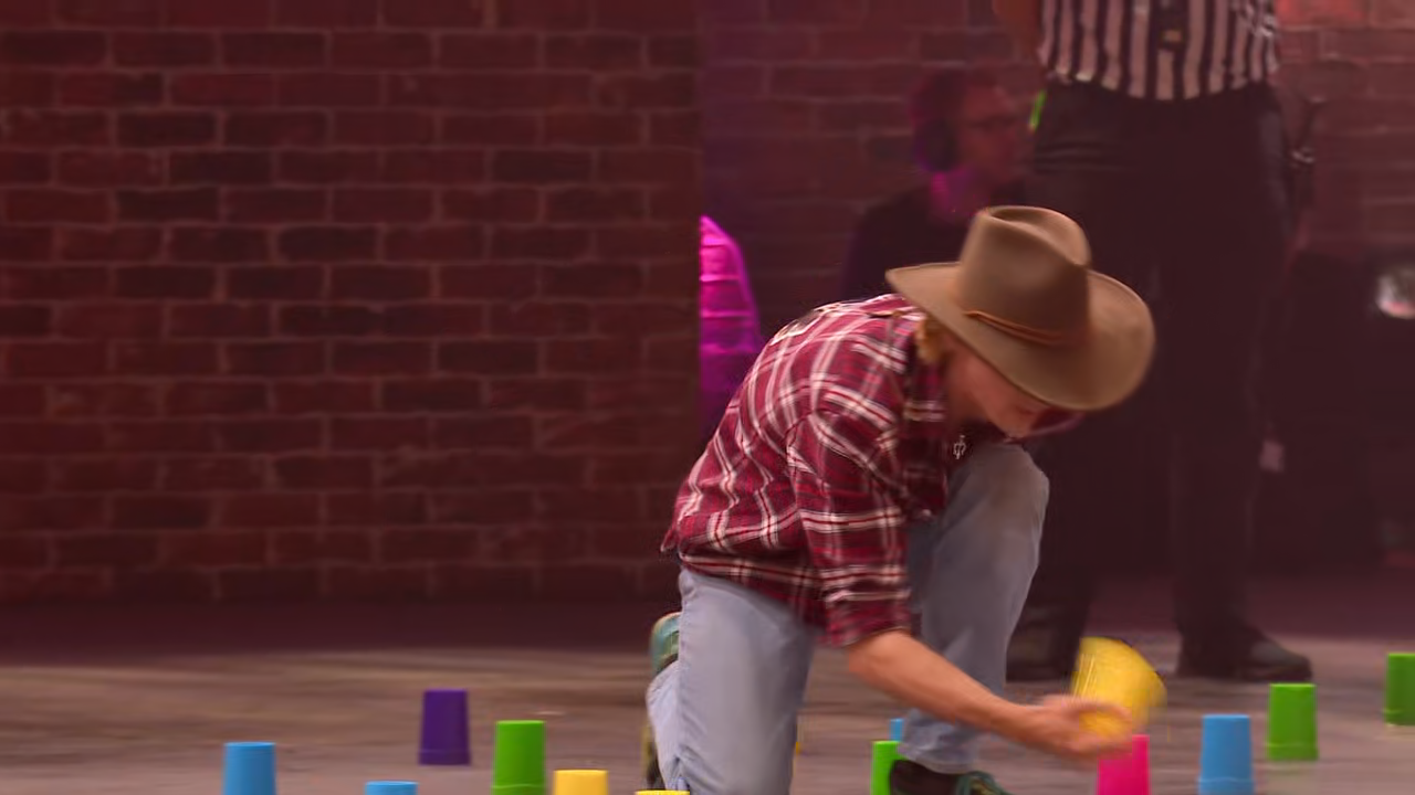 The remaining contestants compete in five games including Upturned Cups, Spring Head, Sleeping Bag Race, Traffic Cone Flip and Arc the Ball.