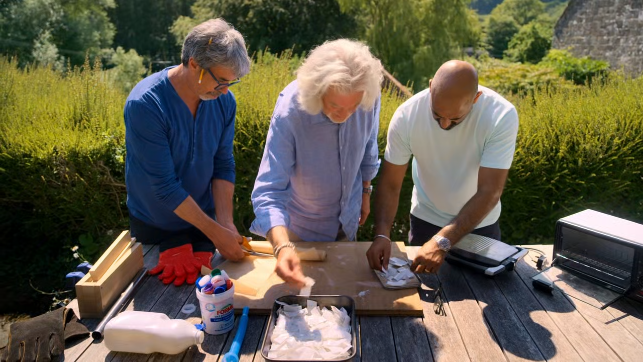 James, Sim and Tony attempt to recycle milk bottles into a game for the pub, repair Peter's Victorian games box, and invent spray-on crisp flavouring.