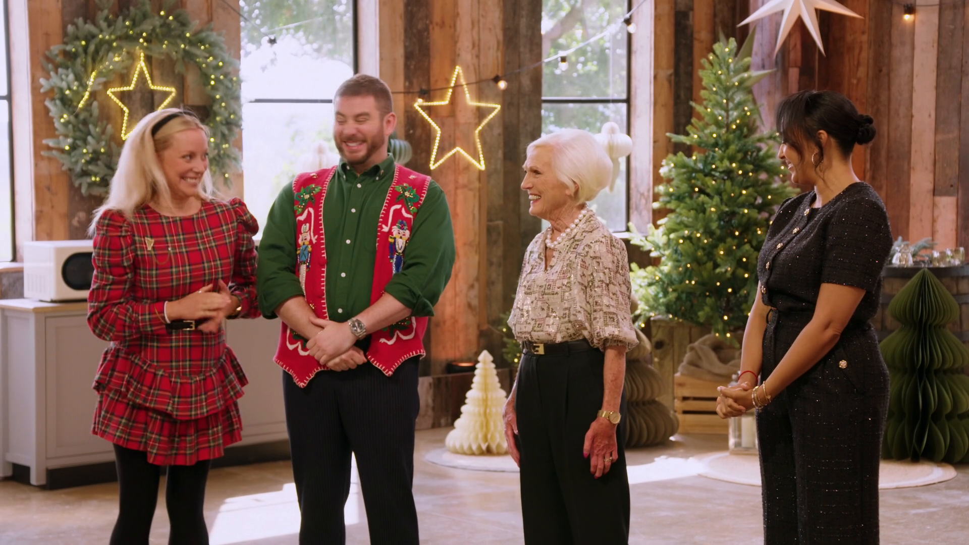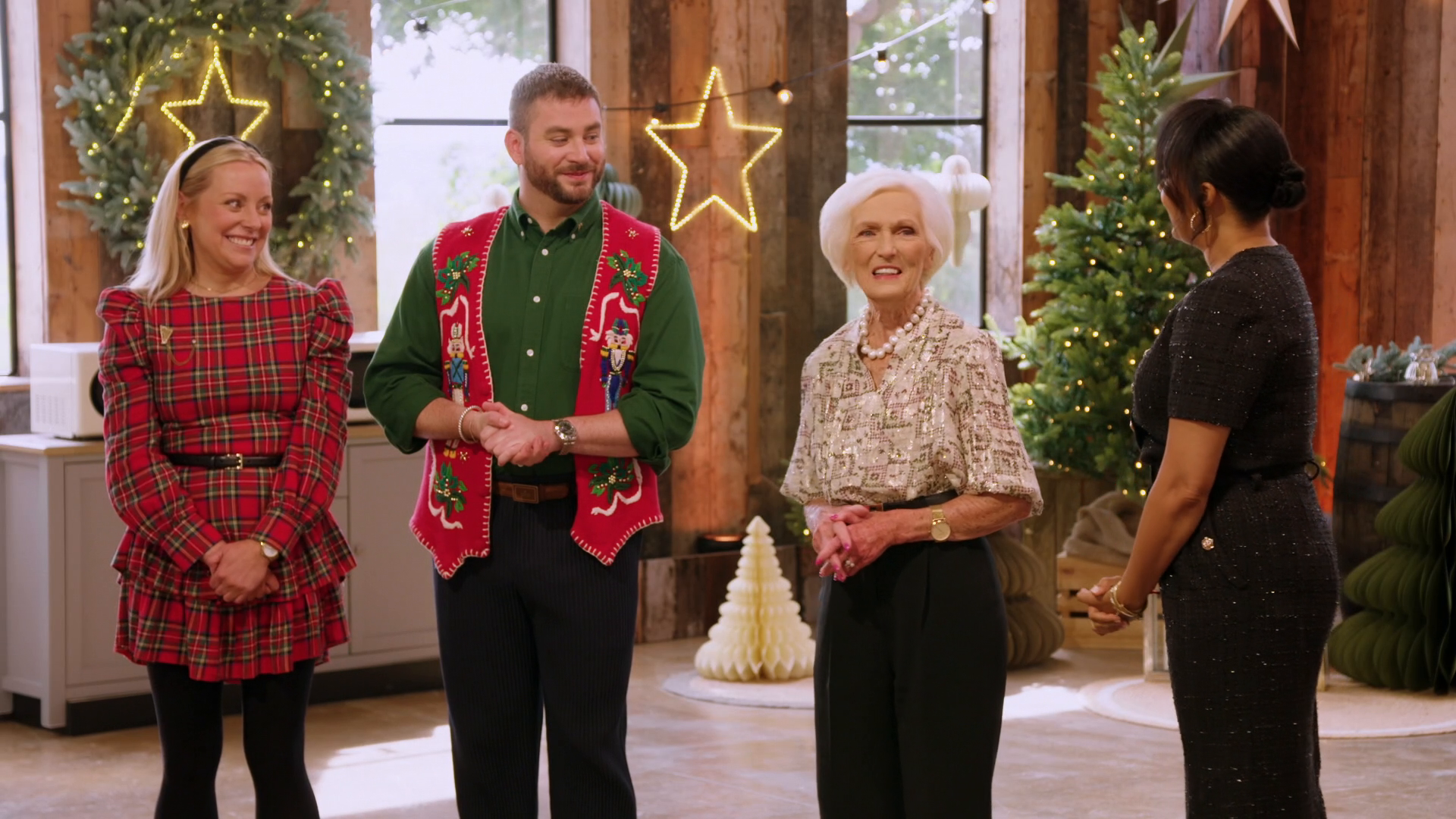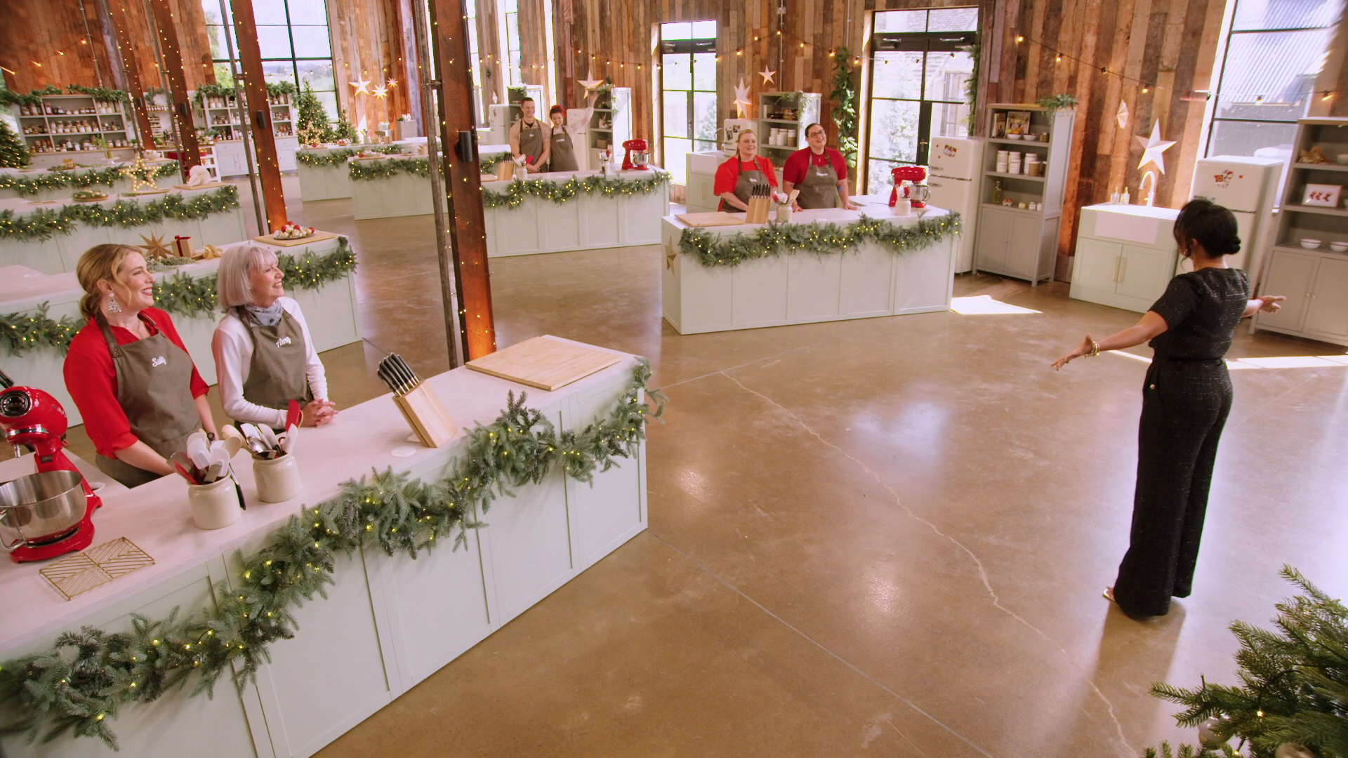 The teams must pull out all the stops for a Christmas centerpiece showcasing three baked elements!