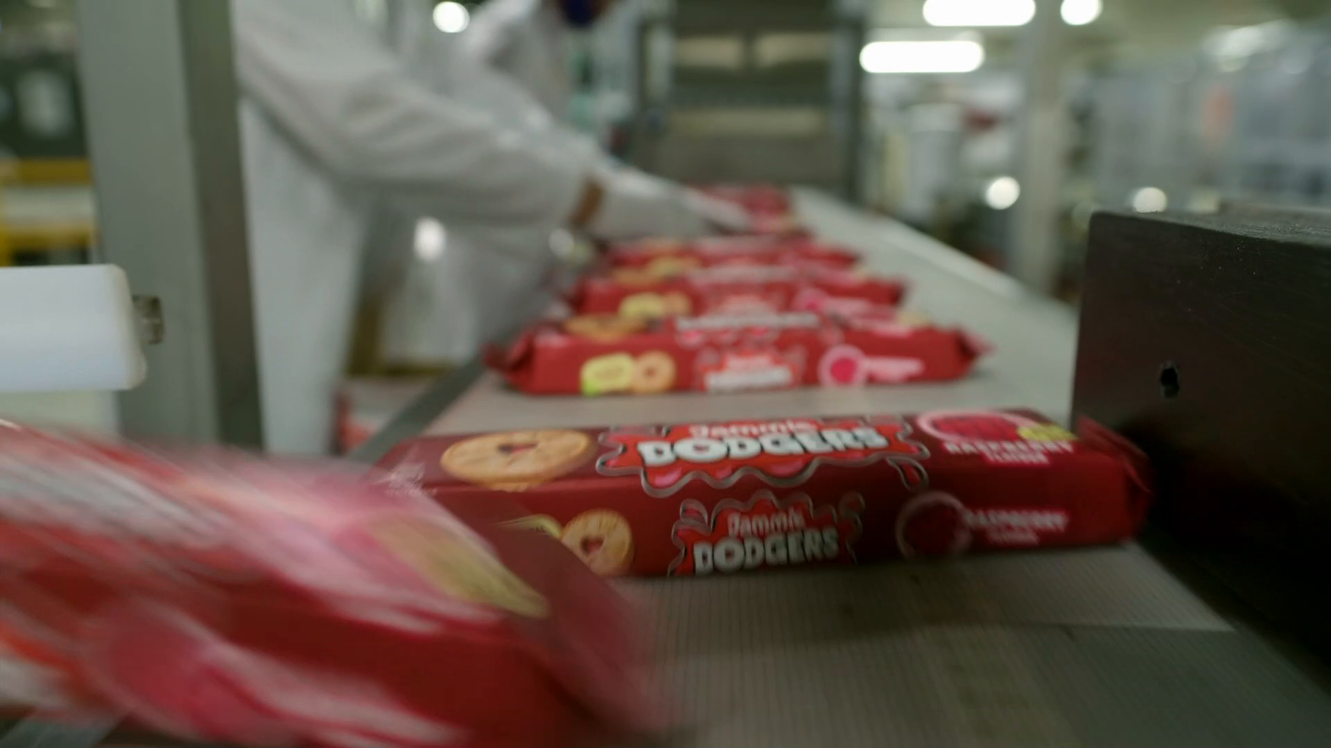 Paddy follows the finished biscuits through the vast factory and watches as they're wrapped in packs of eight and travel on towards the packing department. There, Rebecca has a challenge for him – helping Jenny put the packets into boxes ready to leave the factory. Jenny has worked at the factory for over 34 years and even met her husband there. She makes the process of precisely placing the packs of biscuits into boxes look easy, but as Paddy finds out with hilarious consequences, it's anything but. Jumping ship, he leaves Jenny and her colleagues to clean up his mess and follows his biscuits to the dispatch area, where half a million jammy biscuits get loaded onto the back of a lorry and leave the site. Every day, four or five lorries leave the factory, which is capable of producing 2.2 million Dodgers a day.