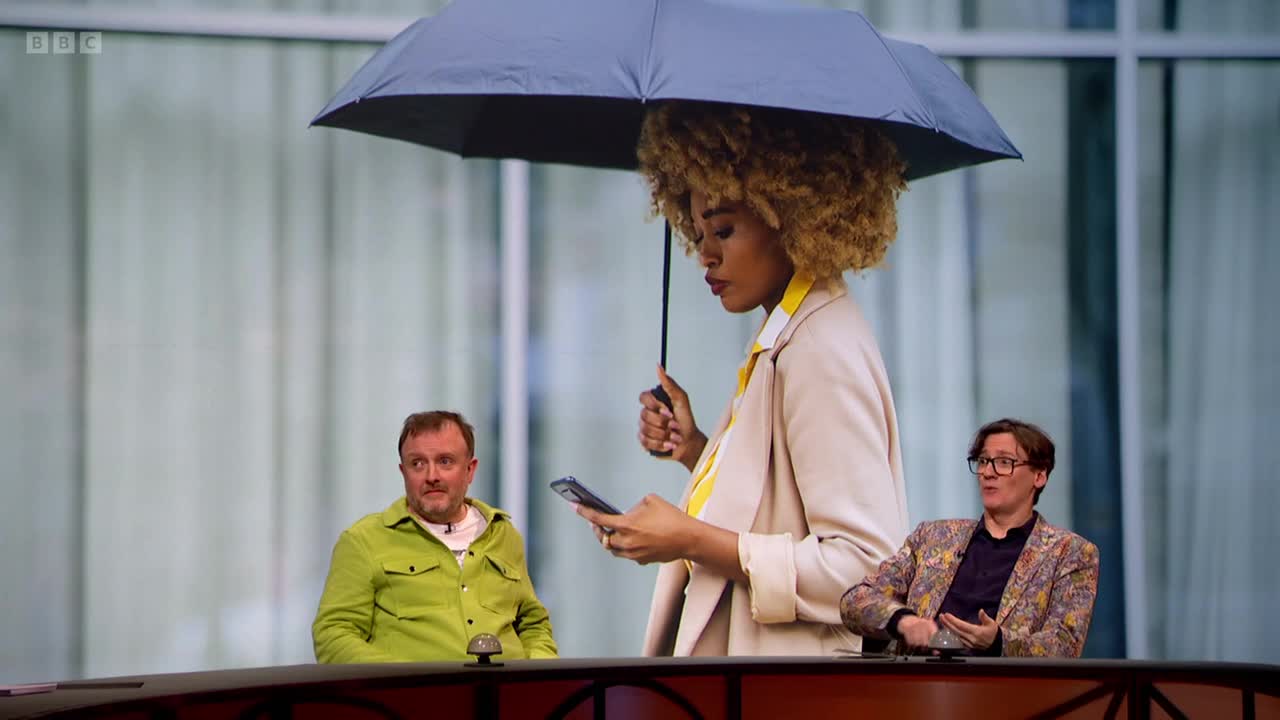 Chris McCausland, Zoe Lyons, Ed Byrne and Alan Davies join Sandi Toksvig for a wet and windy episode of QI.
