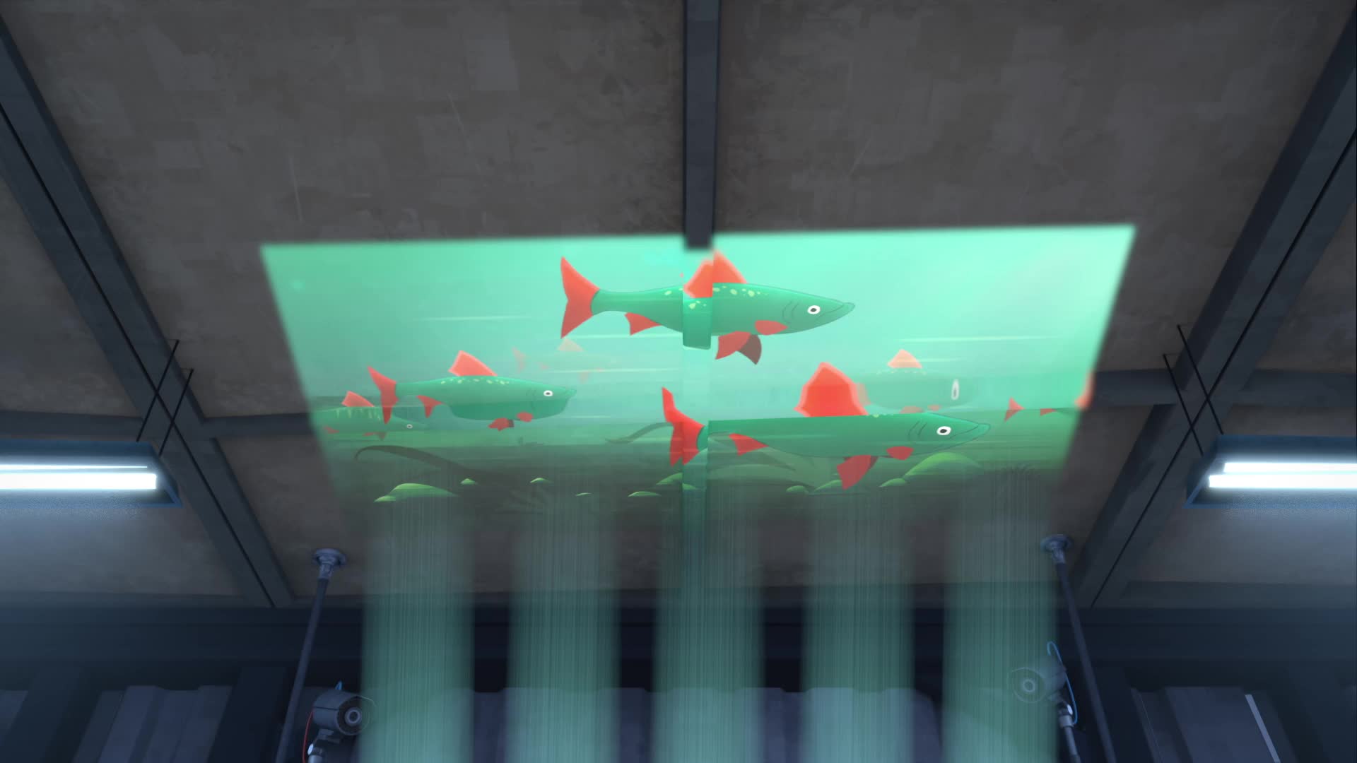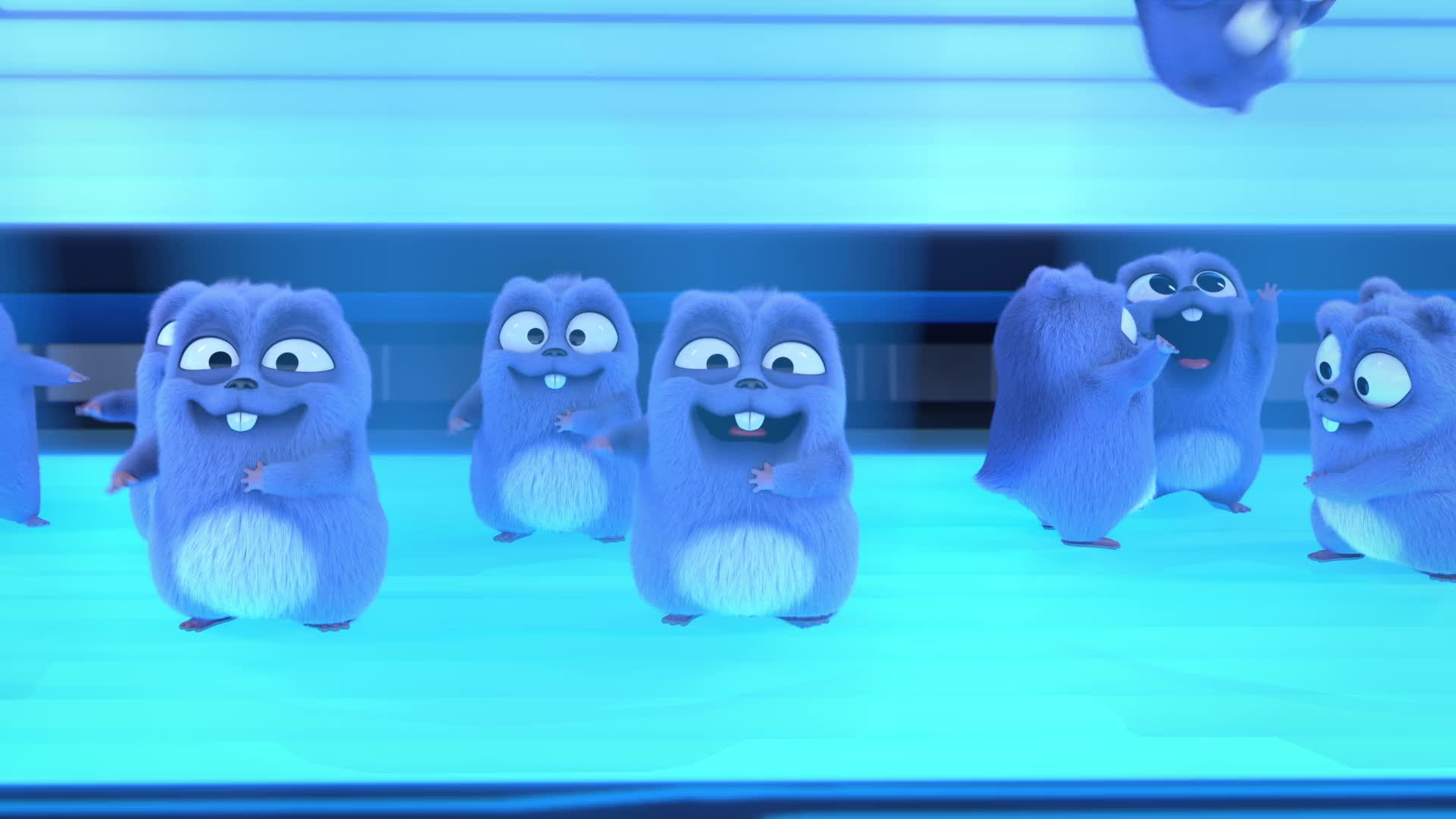 The Lemmings find an ultra-modern glowing cabin they can use for their party.