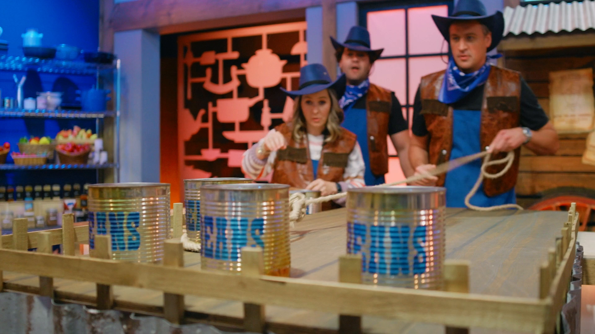 Chefs Jeff Mauro and Tiffany Derry wrangle the recruits into action to rustle up some Tex-Mex tacos; then, it's time for a high-stakes main dish challenge, cowboy rib-eye steaks with potato and vegetable sides.