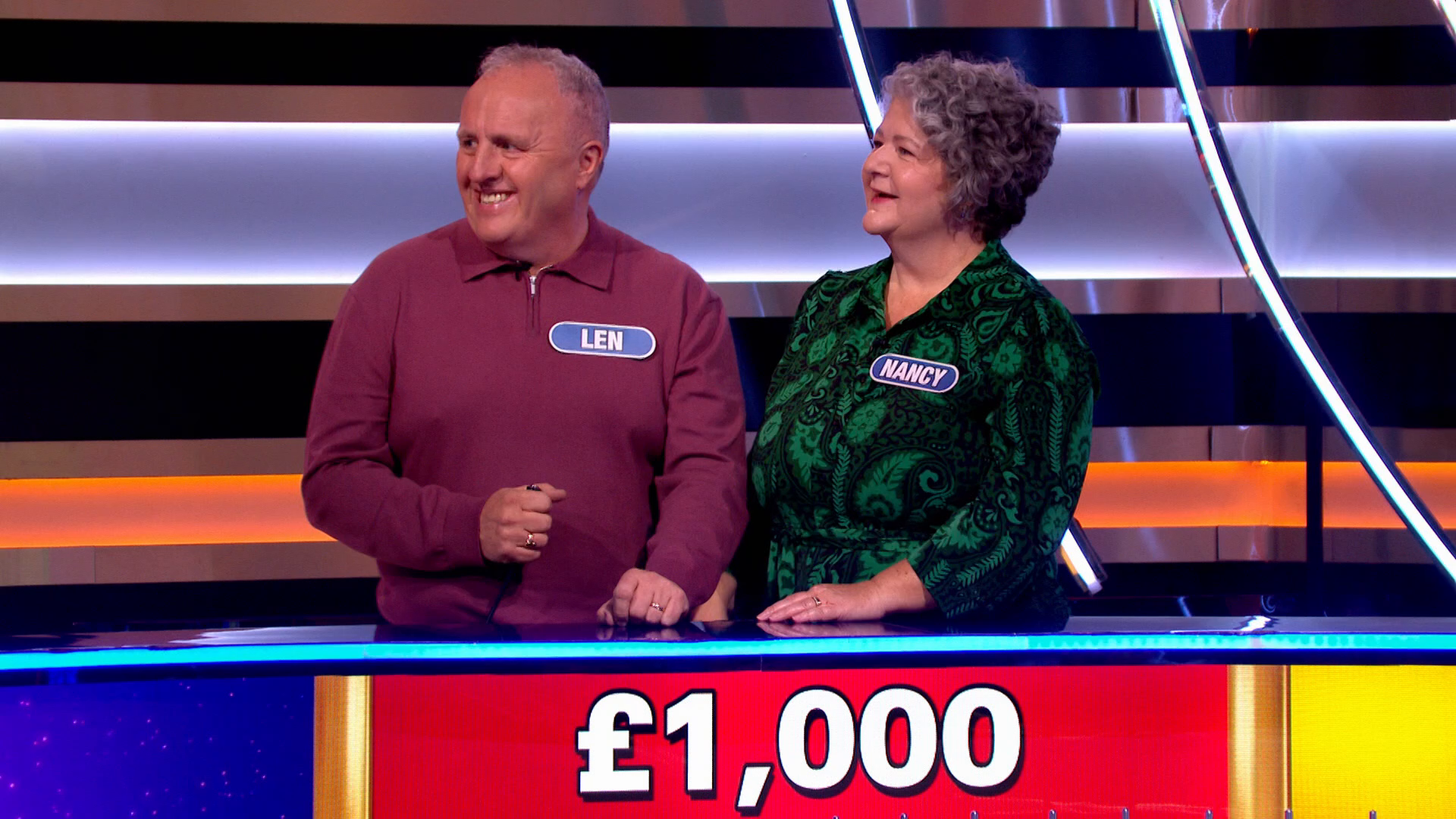 Graham Norton hosts a couples' edition of the game show as Corinne and Aaron, Quamelle and Adam, and Len and Nancy compete to solve word puzzles to get the chance to spin the wheel and win big money prizes, with a potential jackpot of £50,000.