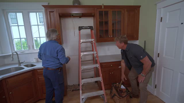 Kevin and Tom remove and save the kitchen cabinets for reuse. Up on the roof, Charlie and Mark tackle the chimney teardown. Later, Kevin meets with the architect to learn the homeowner's vision before checking in on foundation plans with Charlie.