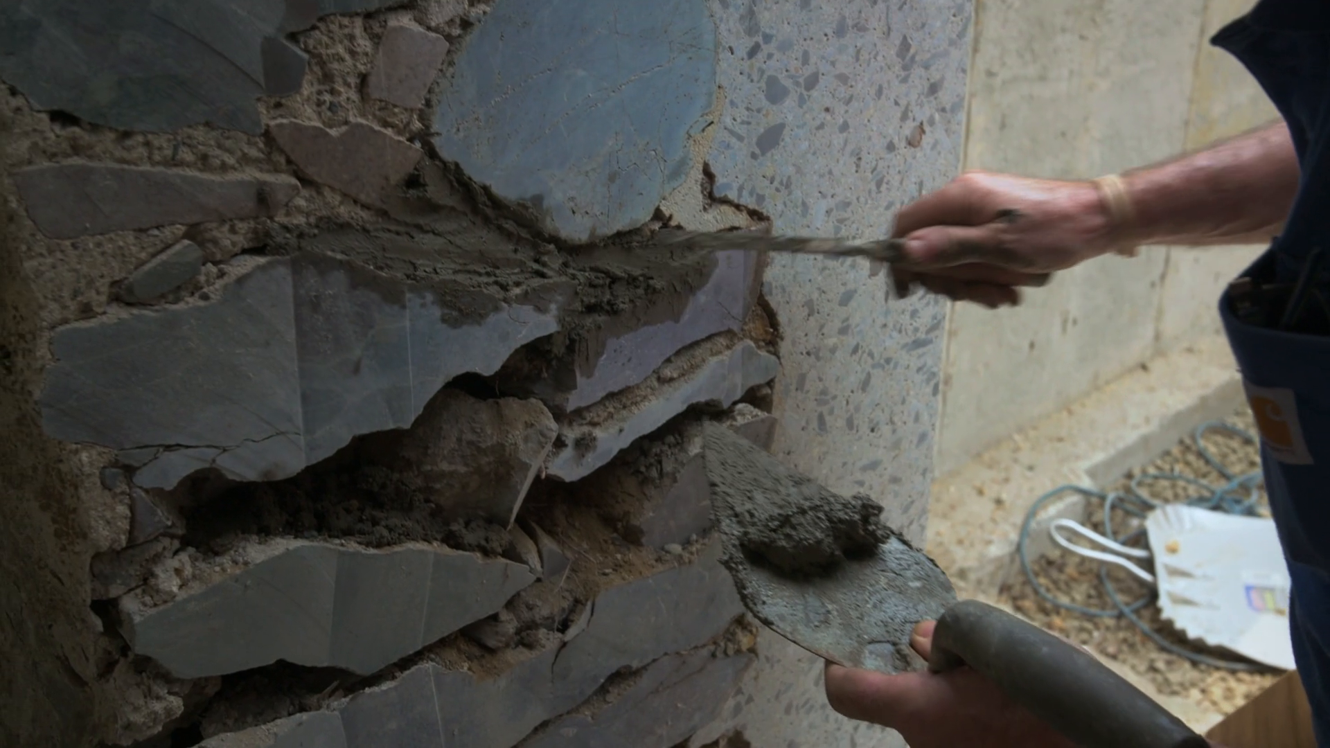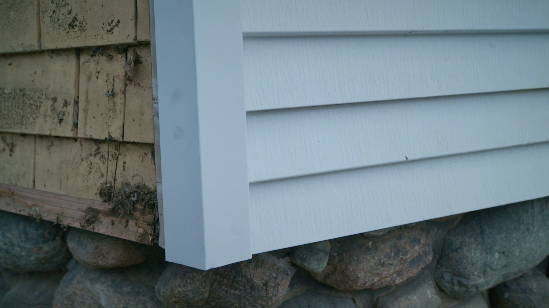 Kevin and Charlie work together to remove aluminum siding from the house. Kevin heads off site to hear about the company that will take the siding away to be recycled. Back at the house, Kevin, Charlie and Tommy install a new steel beam.