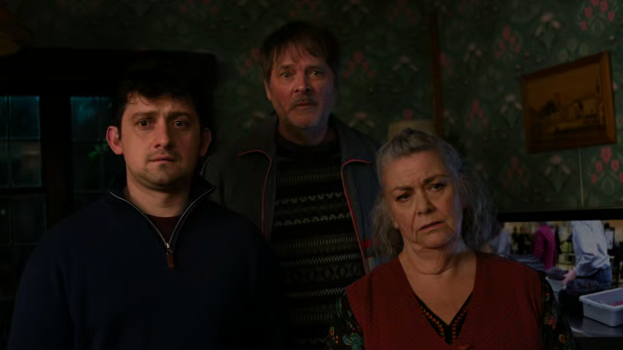 Debbie has news: Harry's dad isn't actually dead, he's just hiding in the loft so they can swindle the cash from his life insurance. Will Harry join these two twits in their scam?