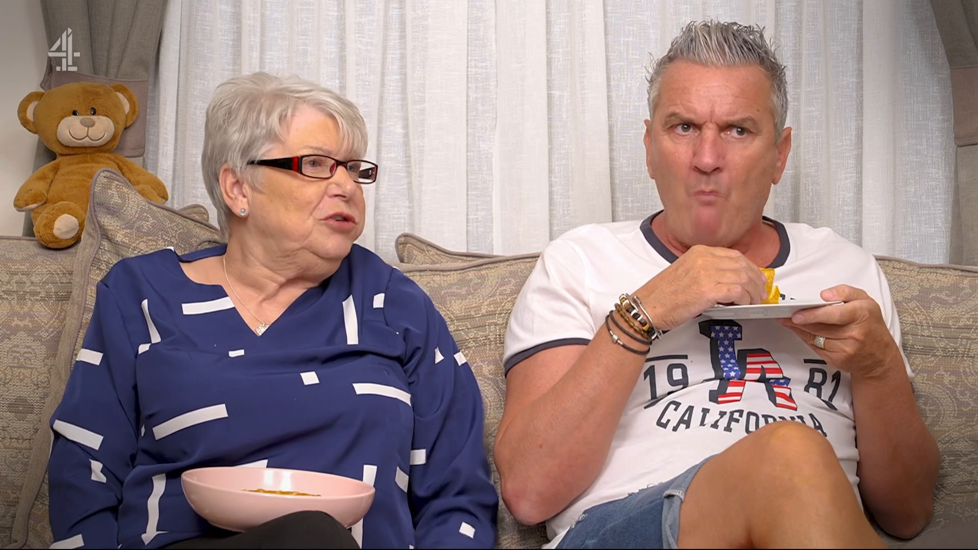 This time the Goggleboxers watch Britain's Got Talent, The Heat, 56 Days, Olivia Attwood: Getting Filthy Rich, Ed Stafford's Rite of Passage, and Alice Roberts: Our Hospital Through Time.