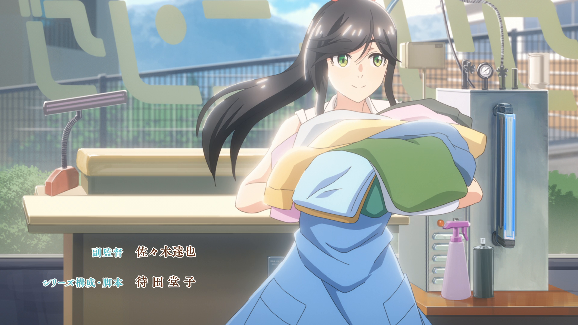 Kinme battles a tough ink stain and enjoys lunch with Hatsuayu while workers repair the damage from the storm.
